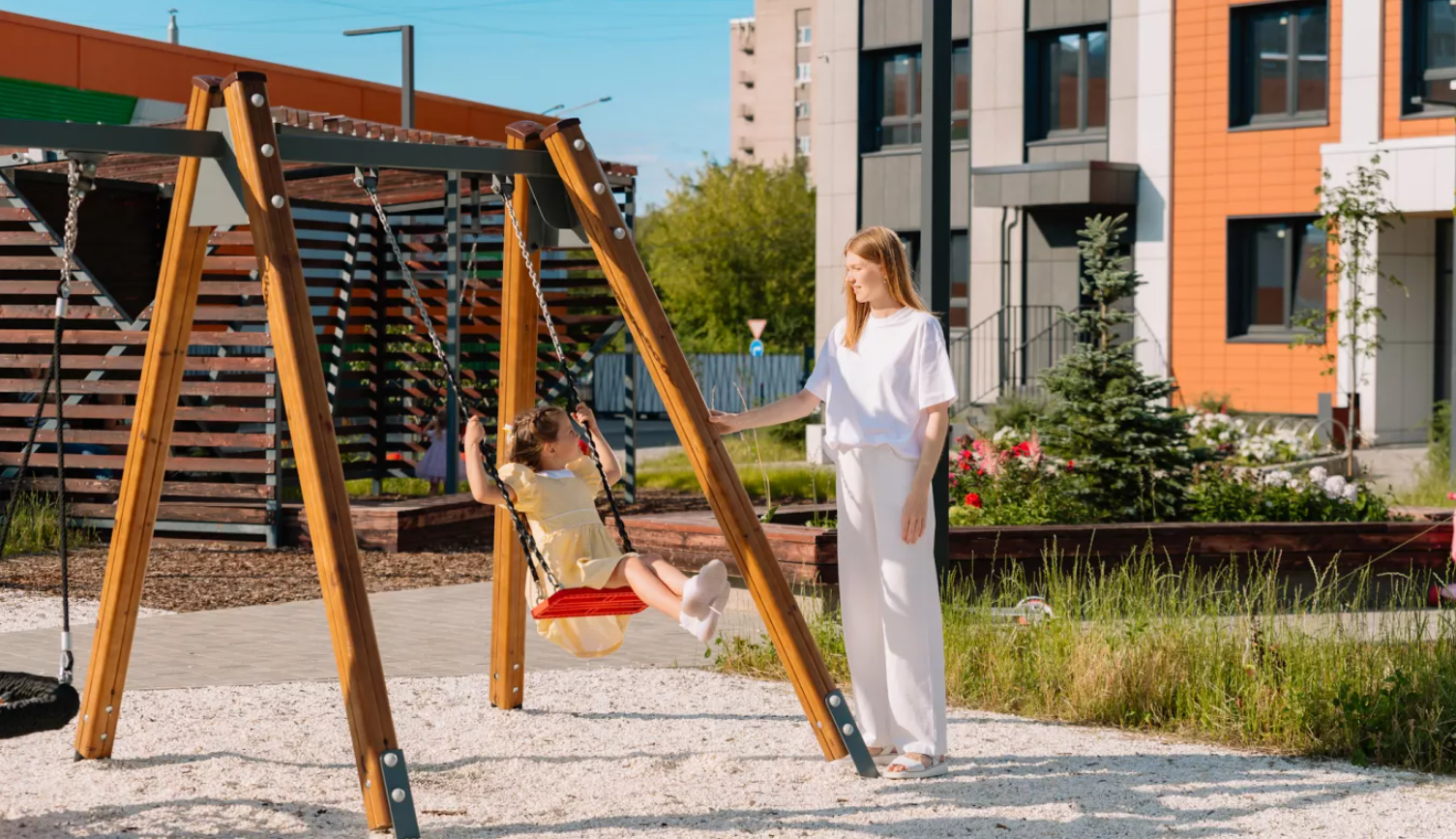 Территория и подъезды спроектированы так, чтобы по ним было удобно перемещаться и с детской коляской, и пешком, и на самокате, и в кресле-коляске. Для этого мы убрали ступеньки, пороги и пандусы на всей территории.