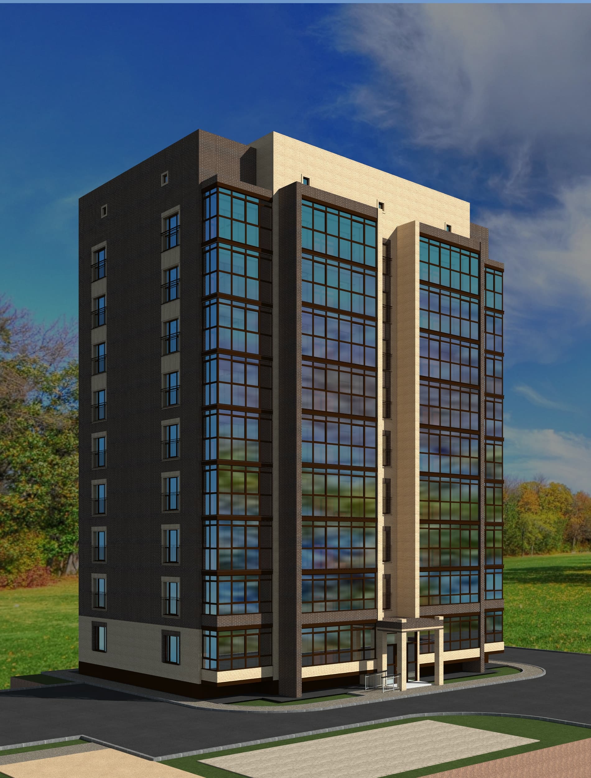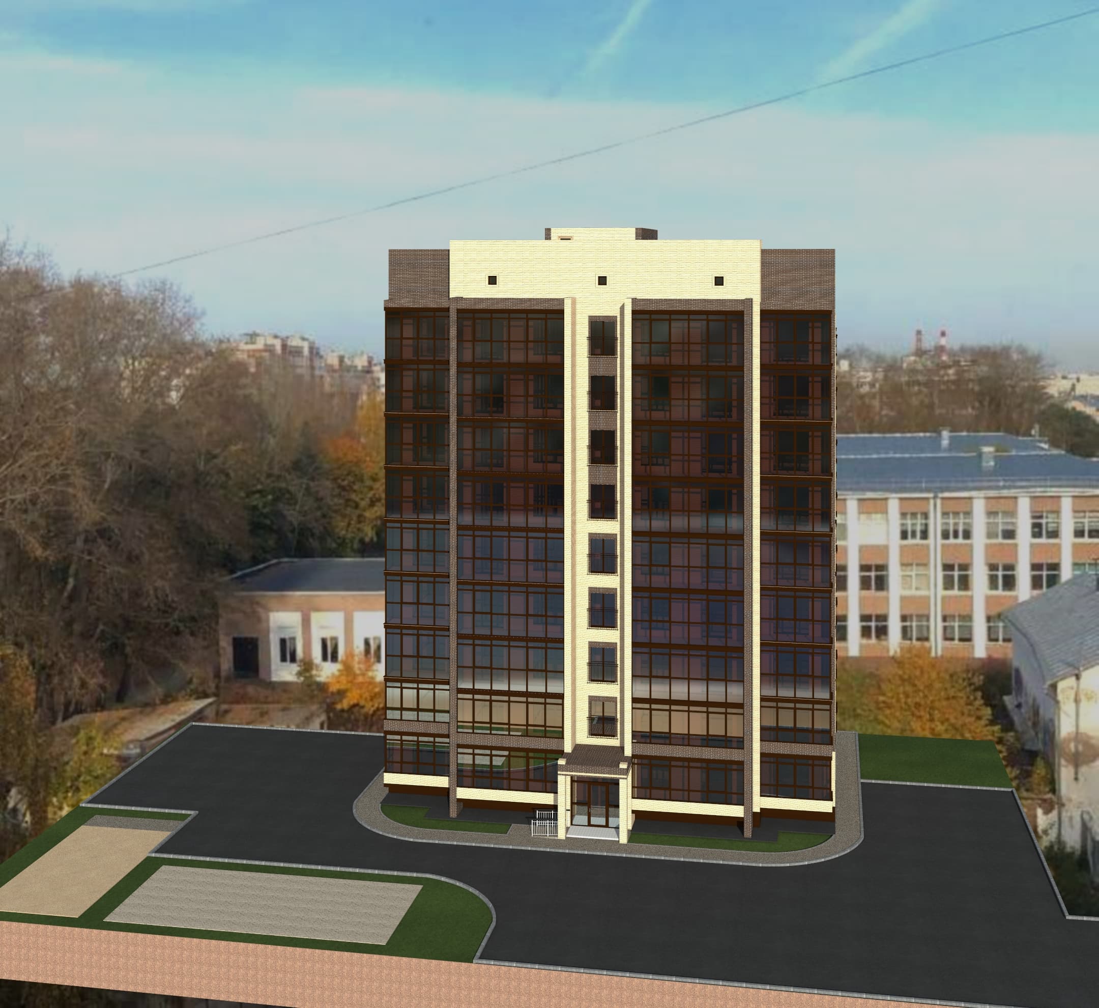 На территории комплекса будут предусмотрены спортивные площадки и зоны отдыха. Площадь закрытой благоустроенной территории составит рекордные для города 1,3 Га.