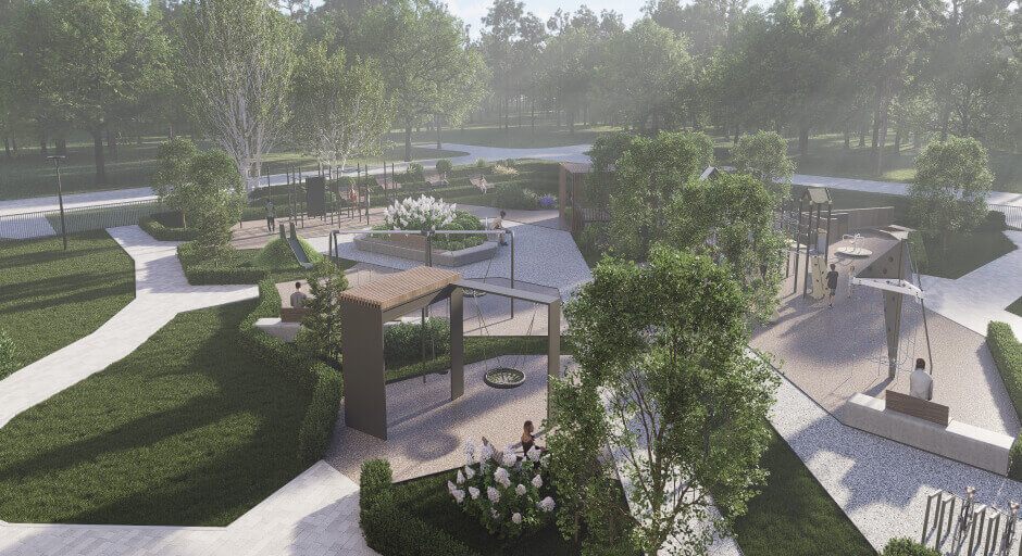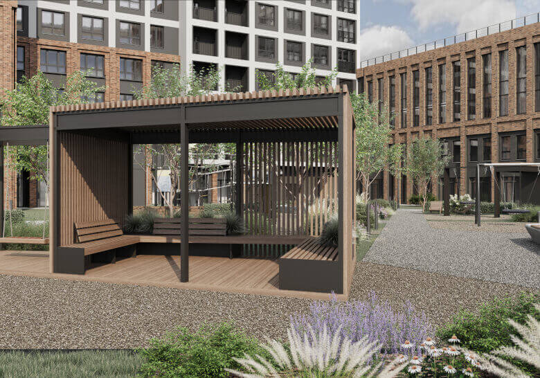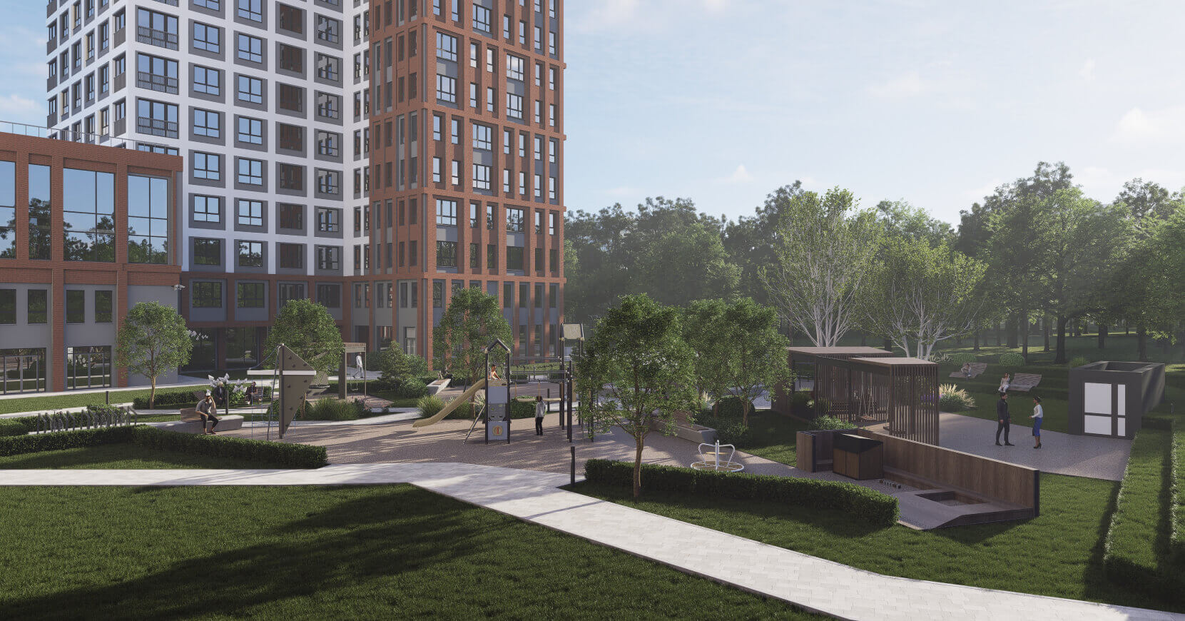 Озеленение территории включает устройство газонов, посадку деревьев и кустарников, что создаёт приятную атмосферу и улучшает экологическую ситуацию в районе.